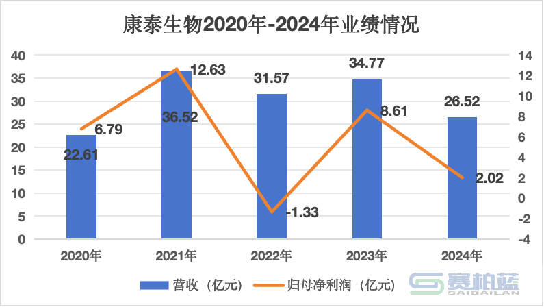 彼时,康泰生物正面临业绩下滑压力。康泰生物成立于1992年,拥有国内首个获批的“四针法”人二倍体细胞狂犬病疫苗、全球首创的双载体13价肺炎球菌多糖结合疫苗、重组乙型肝炎疫苗、水痘减毒活疫苗等,不过受整个行业环境因素等影响,康泰生物近五年的业绩也似“过山车”起伏。