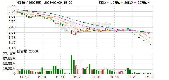 *ST精伦2月9日大宗交易平台共发生3笔成交,合计成交量149.98万股,成交金额206.98万元。成交价格均为1.38元。