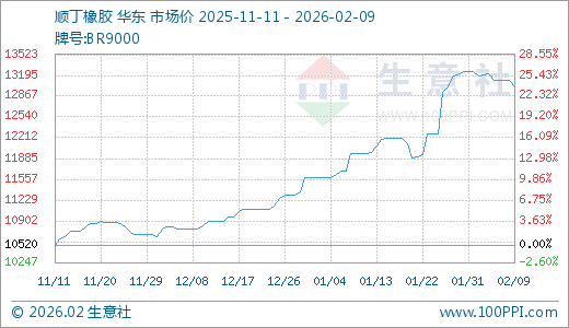 据生意社监测,顺丁橡胶02月09日最新价格13020.00元/吨,最近60天上涨19.56%。