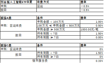 注:以上所提及ETF均不收取申购费、赎回费、销售服务费,申购赎回代理机构可按照不超过0.5%的标准收取佣金,其中包含证券交易所、登记结算机构等收取的相关费用;此外,相关ETF及联接的管理费率和托管费率如下所示: