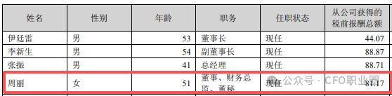 朱晓宇女士上任前,公司财务总监便是周丽女士担任!