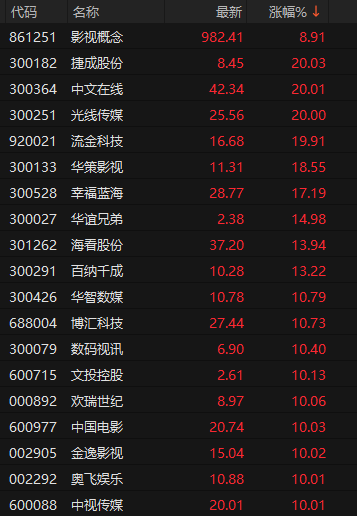 影视板块早盘涨幅排名