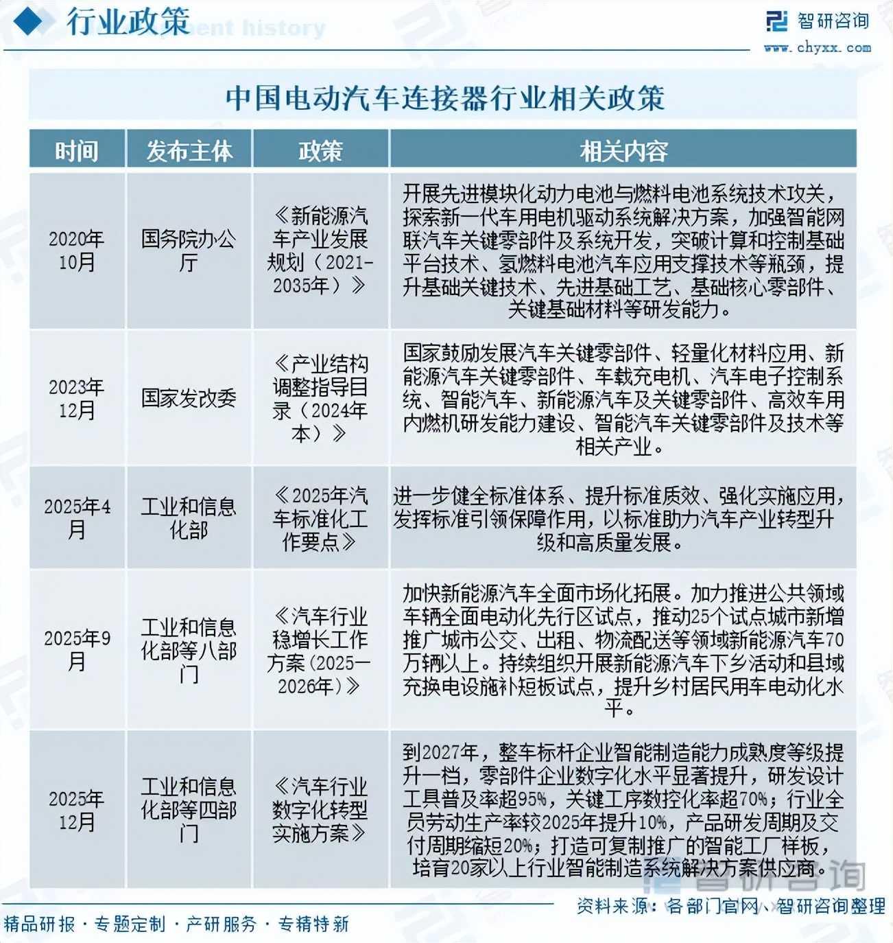 注:本文节选出自智研咨询发布的《研判2026!中国电动汽车连接器行业背景、产业链全景、发展现状及未来发展趋势分析:市场增长动能充沛,智能升级未来广阔[图]》行业分析文章,如需获取行业文章全部内容,可进入智研咨询官网搜索查看。