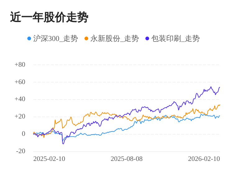 02月10日,永新股份股价继续上涨。截至今日收盘,永新股份上涨1.11%,收盘价为12.74元,盘中股价最高触及12.84元,股价创历史新高。