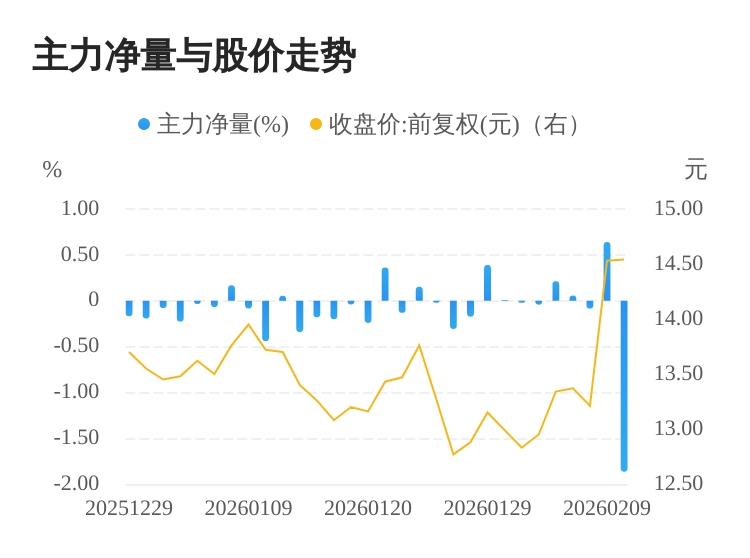 该股今日主力净量为负,且值较大,表明主力大幅流出,主动卖出明显多于主动买入。与此同时,今日换手率较高,主力抛售的嫌疑较大。投顾建议:投资者短期宜合理控制仓位,谨慎为佳。