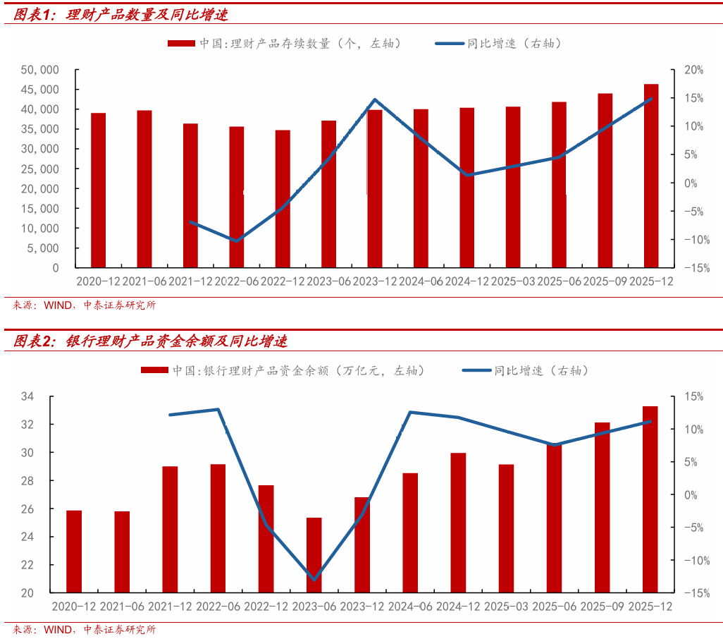 理财产品存续规模为33.29万亿元,同比增长11.2%,全年合计增量为3.34万亿元,全年增量较2024年增加0.19万亿元。