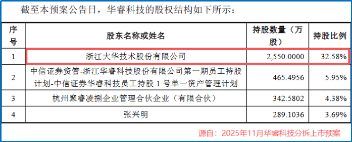 2026年1月19日,分拆自大华股份的华睿科技正式向港交所递交上市申请,分拆后大华股份仍持有其32.58%的股份,保持控股地位。