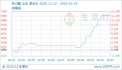 据生意社监测,环己酮02月10日最新价格7000.00元/吨,最近30天上涨11.11%。