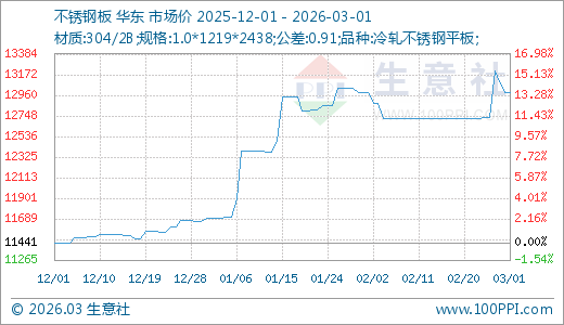 据生意社监测,不锈钢板03月01日最新价格12991.67元/吨,最近60天上涨11.12%。