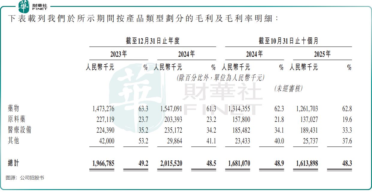 从行业层面看,挑战更为严峻。一方面,集采政策持续挤压利润空间。公司多款产品已纳入国家或省级带量采购计划,虽中标带来销量提升,但价格大幅下降对收入和毛利率造成显著影响。2024年,公司药物毛利率已从2023年的63.3%降至61.3%,2025年前十个月为62.8%,反映出集采带来的盈利压力。