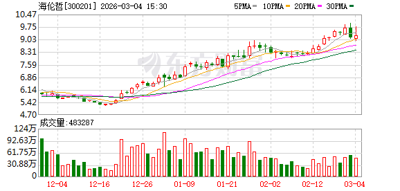 证券时报·数据宝统计显示,海伦哲今日收盘价为9.24元,上涨1.09%,日换手率为4.81%,成交额为4.53亿元,全天主力资金净流出1272.32万元,近5日该股累计上涨1.09%,近5日资金合计净流出1903.19万元。