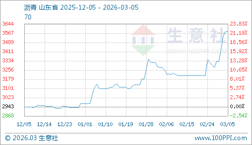 据生意社监测,沥青03月05日最新价格3580.00元/吨,最近5天上涨7.51%,10天上涨11.53%,60天上涨17.38%。
