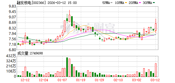 证券时报·数据宝统计显示,融发核电今日收盘价为8.63元,上涨5.89%,日换手率为14.86%,成交额为23.70亿元,全天主力资金净流入4.44亿元,近5日该股累计上涨5.24%,近5日资金合计净流入3.25亿元。