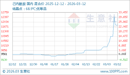 己内酰胺03月12日最新价格11787.50元/吨,最近5天上涨7.77%,10天上涨16.32%,20天上涨19.35%,30天上涨21.86%,60天上涨23.93%。
