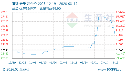 黄磷03月19日最新价格25062.67元/吨,最近20天上涨3.68%,30天上涨5.18%,60天上涨7.57%。