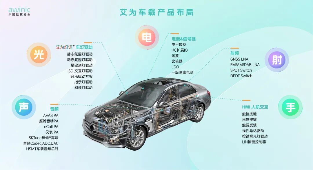 技术层面,艾为电子成立18年来专注于高性能数模混合、电源管理、信号链芯片研发,构建了“声光电射手”五大产品线、40+产品子类、近2000款在售产品的完善矩阵,仅车载灯光驱动领域就有16年技术积累,可提供从芯片到系统级的全栈解决方案。