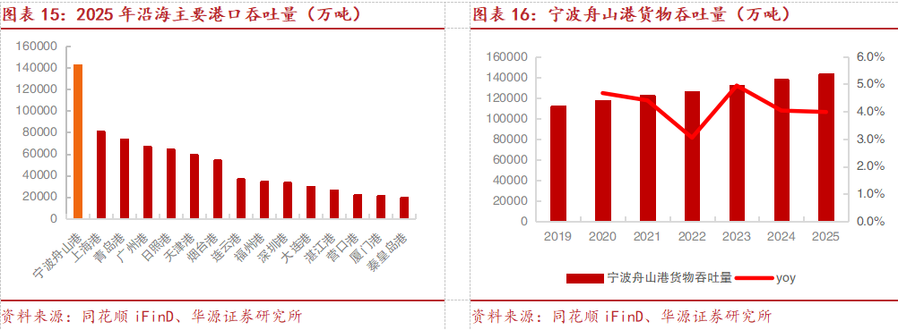 依托全球吞吐量第一大港口,宁波外贸基础为信贷需求提供长期支撑。宁波作为地处长三角核心的外贸强市,依托宁波舟山港在全球港口体系中的领先地位,长期承担着全国出口大省的重要角色。宁波舟山港由宁波港与舟山港合并而成,拥有19个港区、620余座生产泊位,是天然条件优越的深水良港。2025年货物吞吐量达到14.3亿吨,连续17年位居全球第一,对外贸易在宁波市经济结构中的权重极高,为本地银行提供了稳定的信贷需求来源。