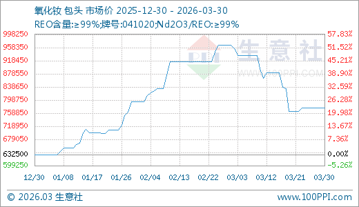 氧化钕03月30日最新价格775000.00元/吨,最近90天上涨22.53%。