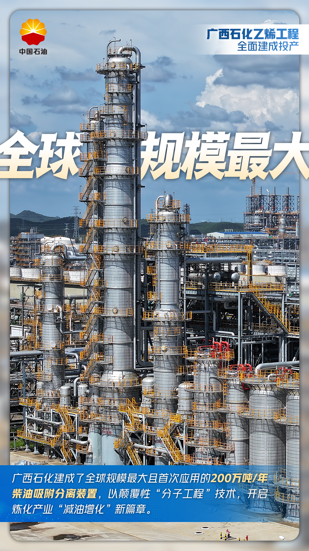 10月30日,国家石化产业规划布局重大项目,中国石油“十四五”重点工程——广西石化乙烯工程,在广西钦州港全面建成投产,首批固体化工产品合格并发运。