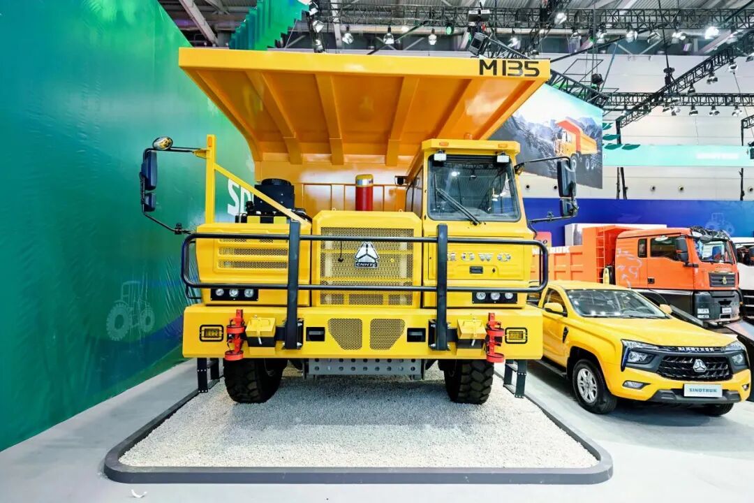 矿产开采场景展区,中国重汽展出了矿卡与新能源自卸车。