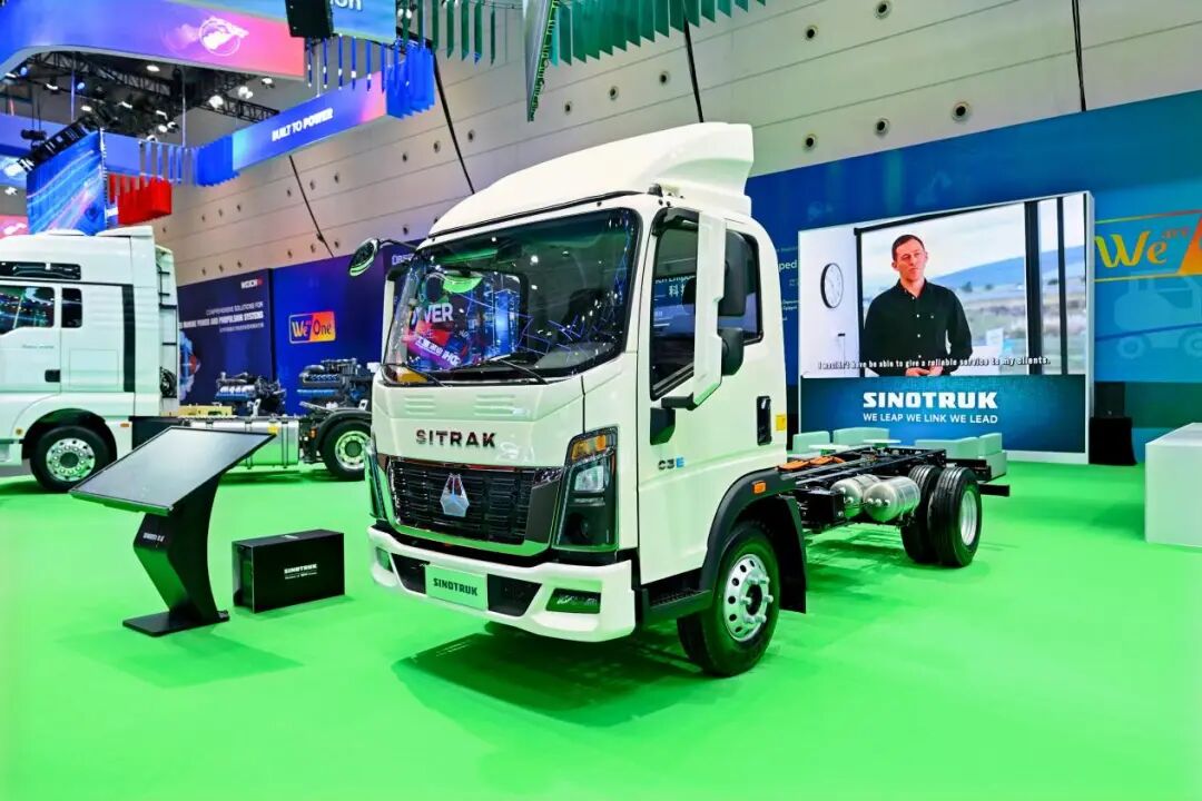 新能源作为本次大会的重点,也是海外嘉宾倍加关注的焦点。在新能源展区,中国重汽展出了重卡、轻卡、皮卡等多类别产品。