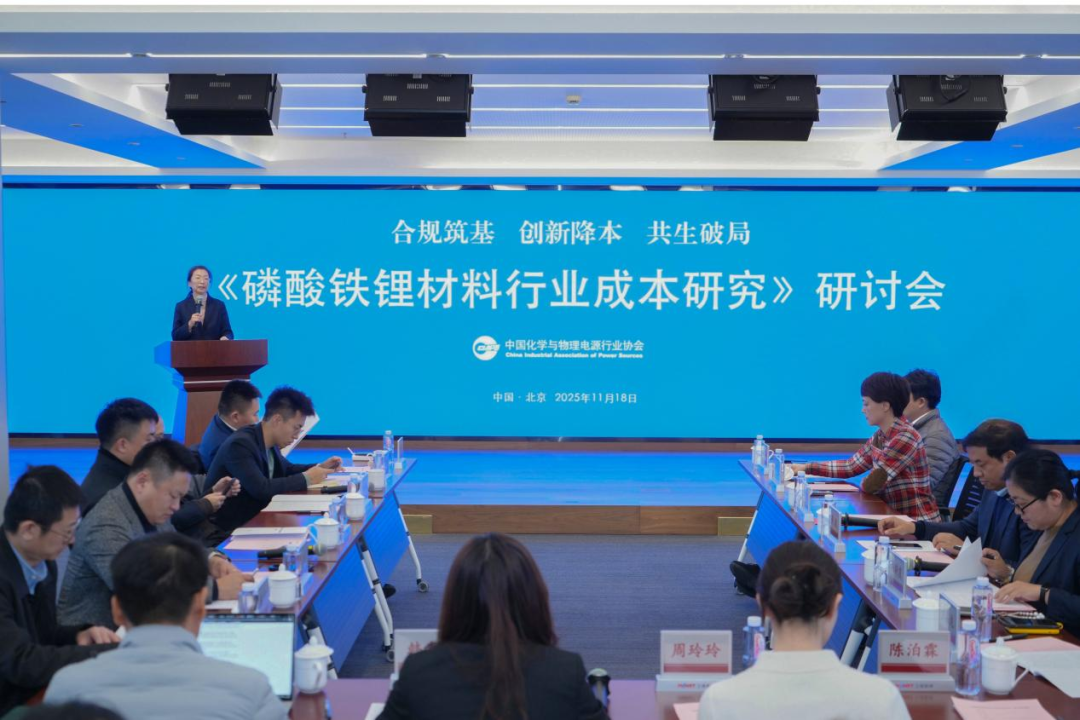 11月18日,以“合规筑基 创新降本 共生破局”为主题的《磷酸铁锂材料行业成本研究》研讨会在工业和信息化部新闻宣传中心发布厅召开。本次研讨会由中国化学与物理电源行业协会主办,工信部新闻宣传中心协办,行业专家、企业代表等齐聚一堂,深度交流,拉开磷酸铁锂材料“反内卷”、产业链上下游“共生共赢”的序幕。
