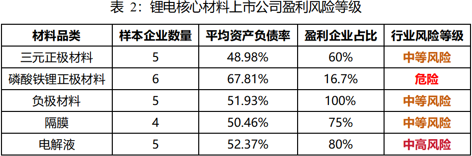 从企业的盈利风险等级来考量,相较于其他锂电关键材料,磷酸铁锂材料行业已然步入极为危险的阶段。