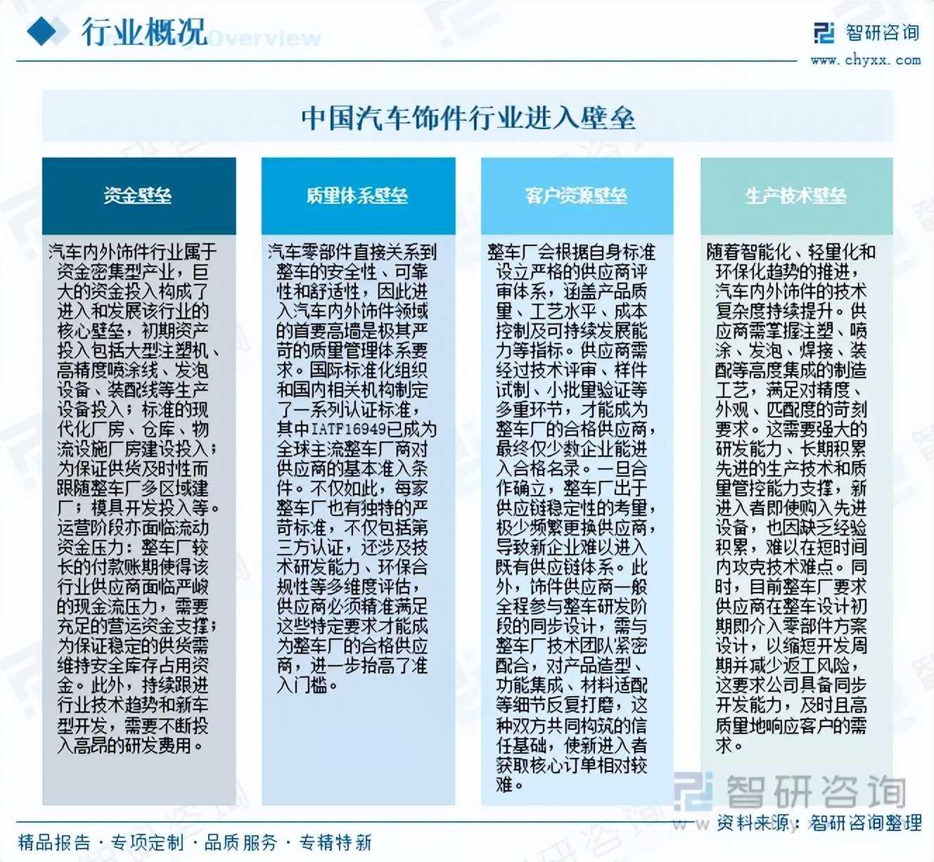 注:本文节选出自智研咨询发布的《研判2025!中国汽车饰件行业进入壁垒、市场政策、产业链、市场规模、竞争格局及发展趋势分析:市场格局较为分散[图]》行业分析文章,如需获取行业文章全部内容,可进入智研咨询搜索查看。