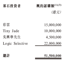 美联股份是次IPO招股引入4名基石投资者,合共认购5150万港元的发售股份,基石投资者包括彩云(MaXiuhui女士家族信托)、Tiny Jade(陈艺昊先生)、吴兴华先生、Logic Selective等。