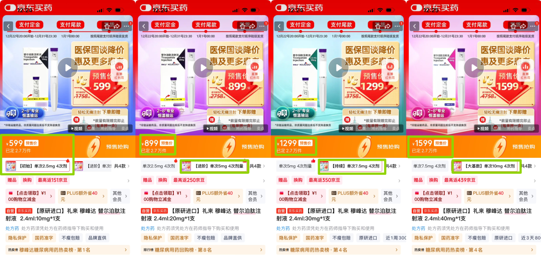 京东、美团、拼多多平台上,替尔泊肽新预售价都有了大幅下降,且自2026年1月开始执行,与国家医保目录的正式落地时间高度契合。