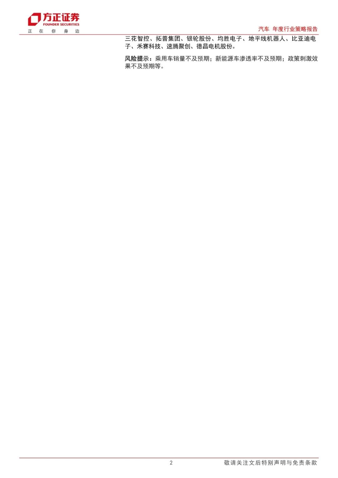 风险提示:乘用车销量不及预期;新能源车渗透率不及预期;政策刺激效果不及预期等。