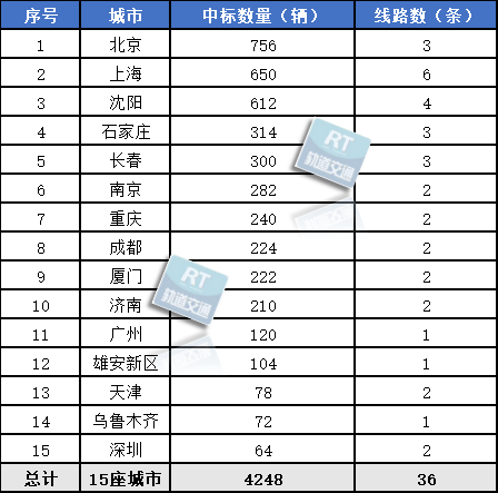 按中标牵引车辆数排名,前五城市依次为北京、上海、沈阳、石家庄、长春,合计采购2632辆,占全年总采购量的61.96%,市场集中度较高。