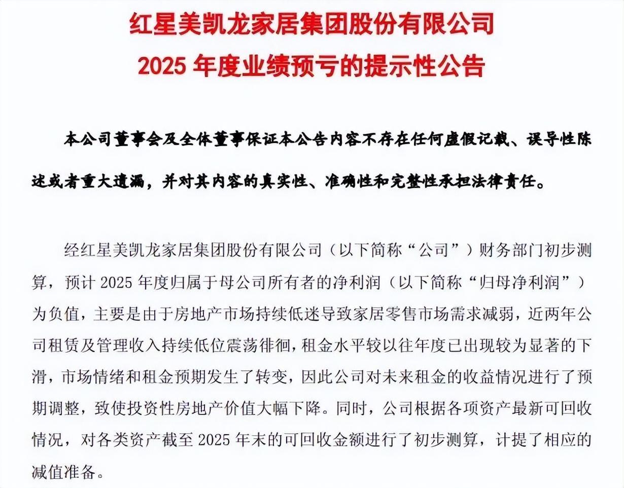 红星美凯龙:2025年度业绩预亏,受房地产市场低迷影响