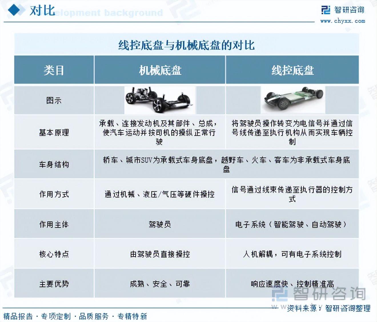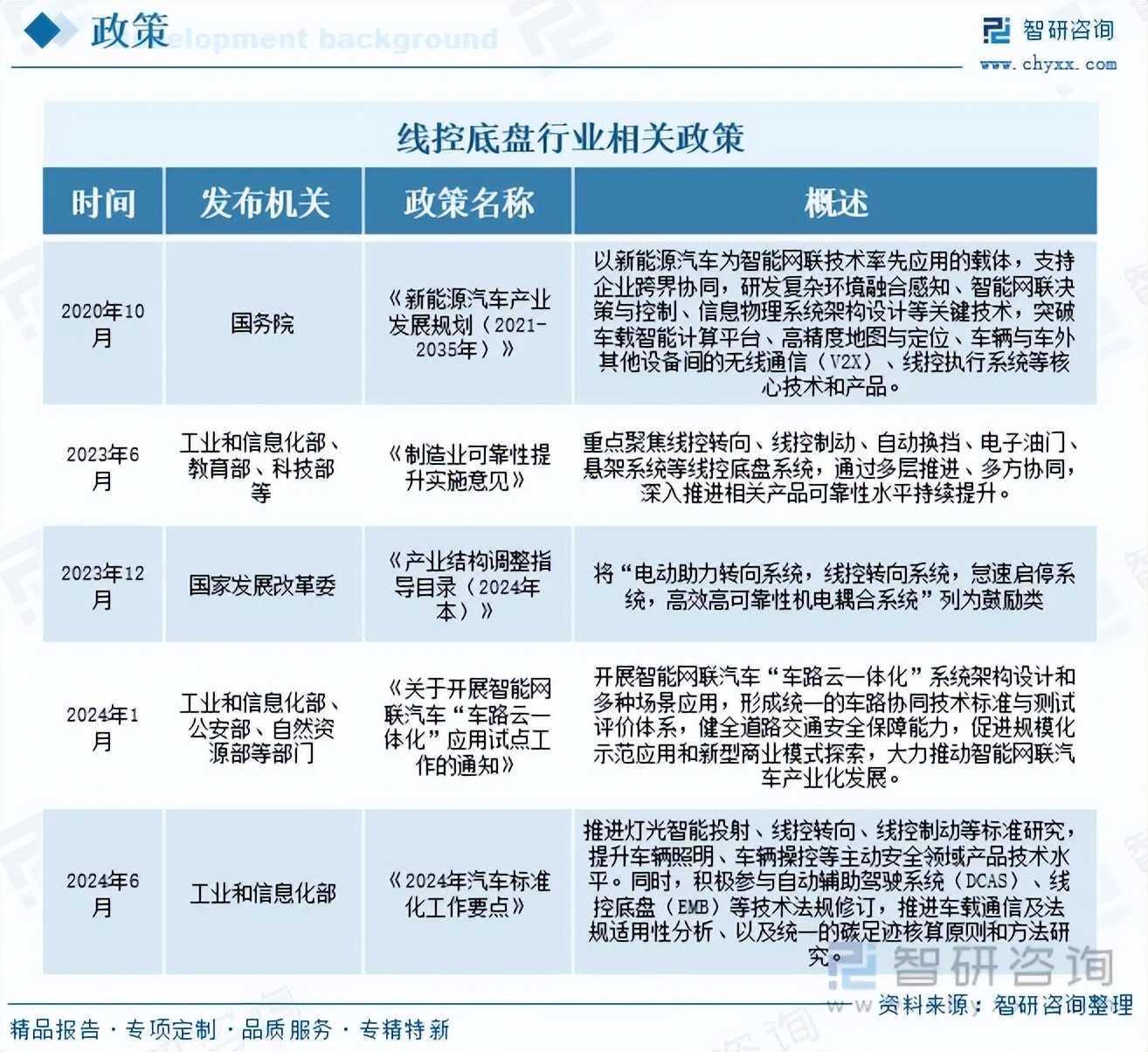 由智研咨询专家团队精心编制的《中国线控底盘行业市场竞争态势及产业前景研判报告》(以下简称《报告》)重磅发布,《报告》旨在从国家经济及产业发展的战略入手,分析线控底盘行业未来的市场走向,挖掘线控底盘行业的发展潜力,预测线控底盘行业的发展前景,助力线控底盘行业的高质量发展。