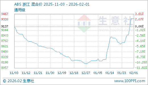 据生意社监测,ABS02月01日最新价格9350.00元/吨,最近5天上涨4.76%,10天上涨7.78%,20天上涨10.00%,30天上涨13.33%。