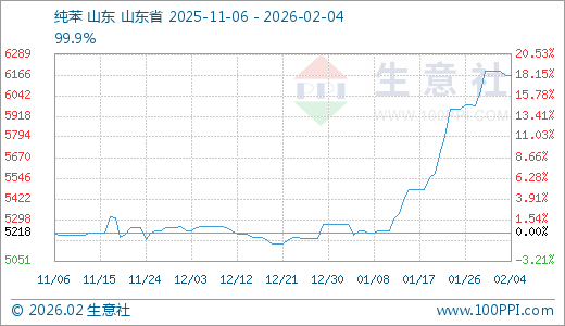 据生意社监测,纯苯02月04日最新价格6163.33元/吨,最近15天上涨10.52%,20天上涨12.54%,30天上涨17.77%。