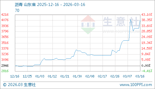 据生意社监测,沥青03月16日最新价格4093.33元/吨,最近5天上涨7.25%,10天上涨14.34%,20天上涨22.43%,30天上涨27.52%,60天上涨30.36%,90天上涨38.91%。