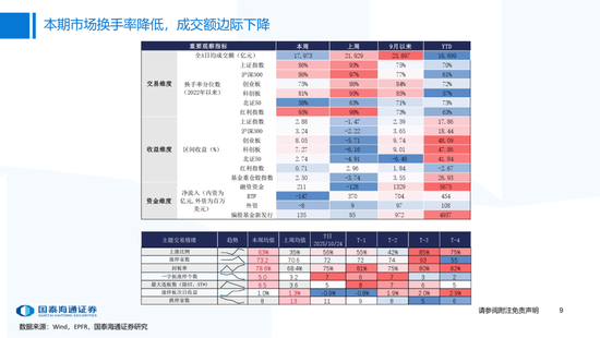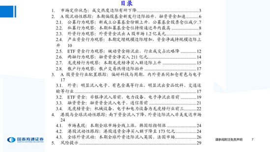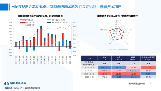 核心观点:本期市场成交热度有所下降,资金层面上偏股基金发行边际抬升,融资资金流入加速,而外资资金小幅流出A股与港股。