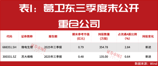 经统计,苏大维格(维权)、微电生理三季度末的前十大流通股东中,均出现了葛卫东的身影,且均为新进重仓(见表1)。