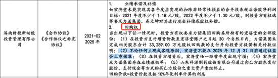 宏济堂第二大股东济南财投新动能,出资比例16.57%。该股东除了宏济堂业绩承诺无法兑现有权要求补偿外,若宏济堂未达到“2025年12月末不能通过证监会上市核准”等条件时,也有权要求“力诺系”一方回购全部股份。