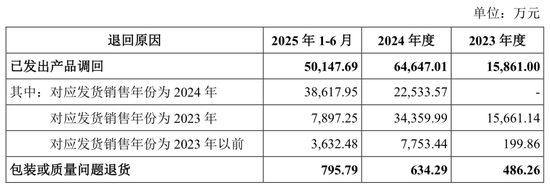 其二,收入质量存疑。宏济堂于2023年及2024年,因资产破损、质量退货及产品调回导致的金额合计分别达1.63亿元和6.52亿元,占当期营收比例高达13.75%和50.89%,引发监管对其收入真实性的问询。