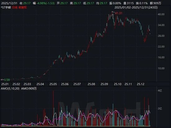 2025年十大牛股中,位居第4至第10位的个股依次是:*ST亚振、胜宏科技、飞沃科技、菲林格尔、鼎泰高科、恒勃股份、顺灏股份,全年涨幅均超500%。