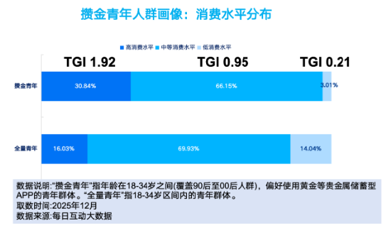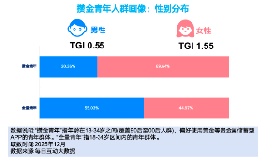 1、“攒金青年”指年龄在18-34岁之间(覆盖90后至00后人群),偏好使用黄金等贵金属储蓄型APP的青年群体。“全量青年”指18-34岁区间内的青年群体。
