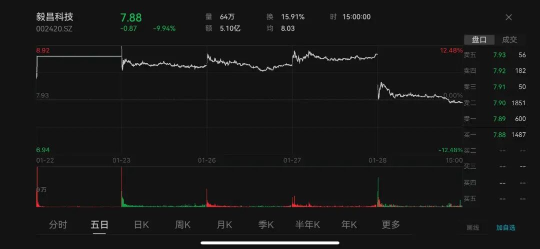 毅昌科技:更惨,直接一字跌停,封单超3万手,全天就成交了2.1亿元,想卖都卖不出去;