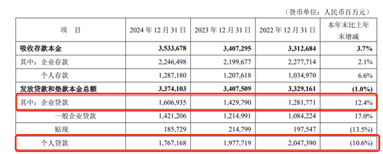 利息净收入的锐减,主要源于平安银行信贷结构的变动。财报显示,平安银行2023-2024年大力压降收益率更高的个人贷款,转而增加收益率更低的企业贷款的比例。这一趋势在2025年前三季度仍在持续,截至2025年9月30日,企业贷款占比从2022年底的38.5%上升至49.4%,几乎追上了个人贷款的占比(50.6%)。