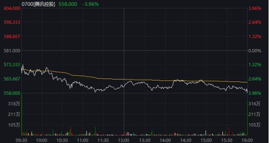 腾讯控股(0700.HK)盘中大幅跳水,收盘跌约4%,最新市值50906亿港元。