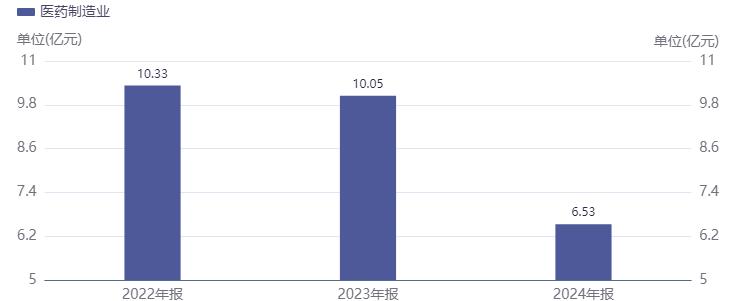 近年来,双鹭药业主营业务收入持续下滑。2022年至2024年,公司医药制造业营收分别为10.33亿元、10.05亿元、6.53亿元,同比分别下滑13.82%、2.68%、35.08%、23.65%。