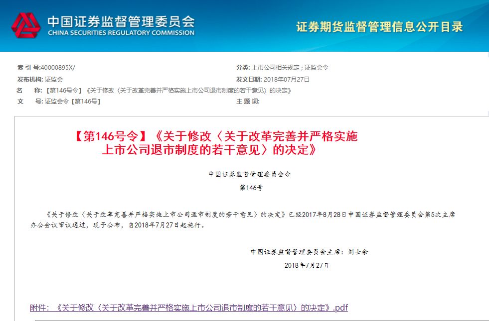 证监会修改退市制度