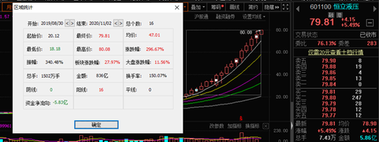 而据choice数据,该股当前的月线表现也创出了A股最长月线连阳纪录。紧随其后的中航善达、仁东控股、恒通股份三股的月线连阳次数也超过10次,但涨幅明显不及该股。值得注意的是,历史上,贵州茅台也曾创出了月线16连阳的走势,恒力液压此番表现可谓与茅台打成了“平手”。