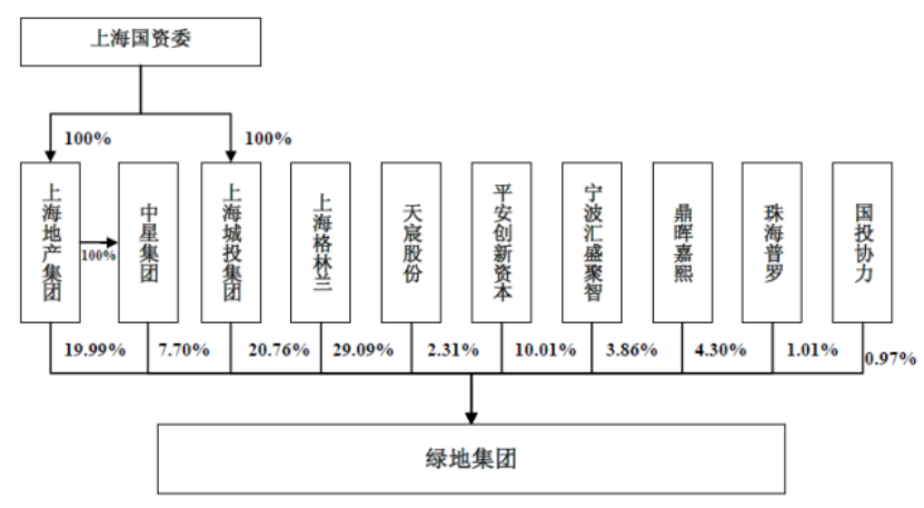 1992年成立时,绿地是纯粹的国企,经历多次股权变更后,到2013年12月前,上海地产集团(含其全资子公司中星集团)、上海城投集团等国有独资企业股东持股超六成。